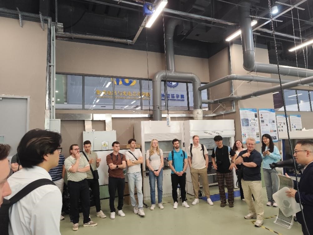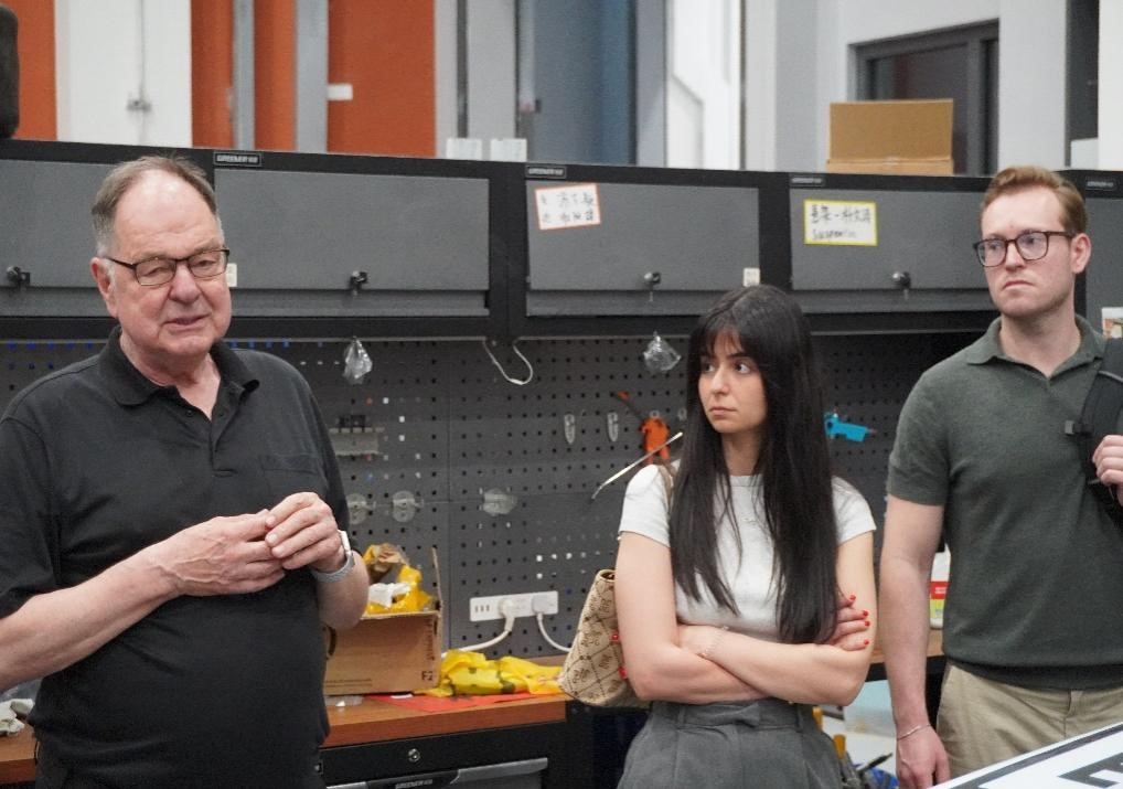 瑞士西北应用科学与艺术大学师生团三位导师Michael Jeive、Evelyn Kopec、Irene Büller以及来自5个国家的24为在读本科生先后参观了深圳市超金刚石与功能晶体应用技术重点实验室、数字成型实验室、油泥模型实验室、图书馆、赛车工作室以及顺丰智慧物流实训基地等。城市交通与物流学院院长Franz Raps,新材料与新能源学院、创意设计学院及图书馆的多位教师和学生代表向远道而来的欧洲师生们详细介绍了深技大的办学特色与校园文化,充分展示了学校人才培养的特色亮点。