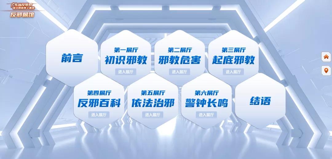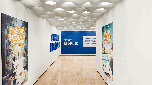 反邪展馆由初识邪教、邪教危害、起底邪教、反邪百科、依法治邪、警钟长鸣六大展厅组成,运用多种展示手段和前沿媒体技术,深入剖析邪教的本质及全面列举邪教的危害,将反邪教教育主题寓于生动的展示体验之中。