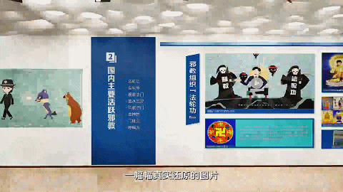 根据权威资料,展馆制作团队精心挑选出261个音视频和809张图片,撰写了8.7万字文本大纲。丰富的内容并非只是枯燥无味的说教,而是通过同样丰富的多媒体形式一一呈现。比如在“反邪展馆”这一部分就涵盖图文、动漫和微视频等多种形式,用深入浅出的解读、通俗易懂的语言普及反邪知识,你只需用指尖轻轻一点就能收获“移步换景”的观展体验。