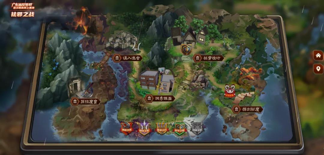 祛邪之战是一个以互动游戏为引导、反邪宣传内容为中心的沉浸式科普空间,观众将以第一人称的视觉,在“历险魔窟”“误入迷宫”“洞悉假面”“拆穿诡计”和“挥剑斩魔”五个游戏关卡中披荆斩棘、步步前进,在相继获得“勇敢之斧”“明辨之戟”“智慧之刃”“科学之盾”和“法律之剑”五个徽章后,才能最终赢得“祛邪之战”。