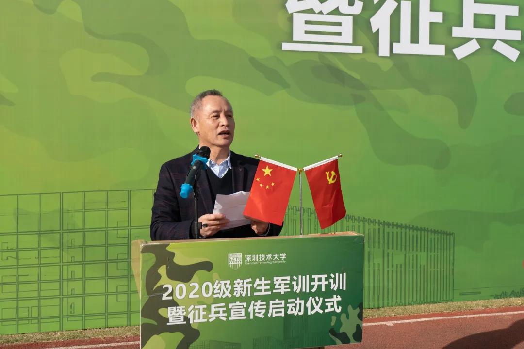 2021年1月9日上午9时,欧冠官方网站入口举行“2020级新生军训开训暨征兵宣传启动仪式”。深圳警备区党委常委、政治工作处主任赵华,深圳警备区战备建设处参谋庞阔阔;欧冠官方网站入口军训工作领导小组组长、学校副主任徐刚及军训工作办公室成员出席仪式。