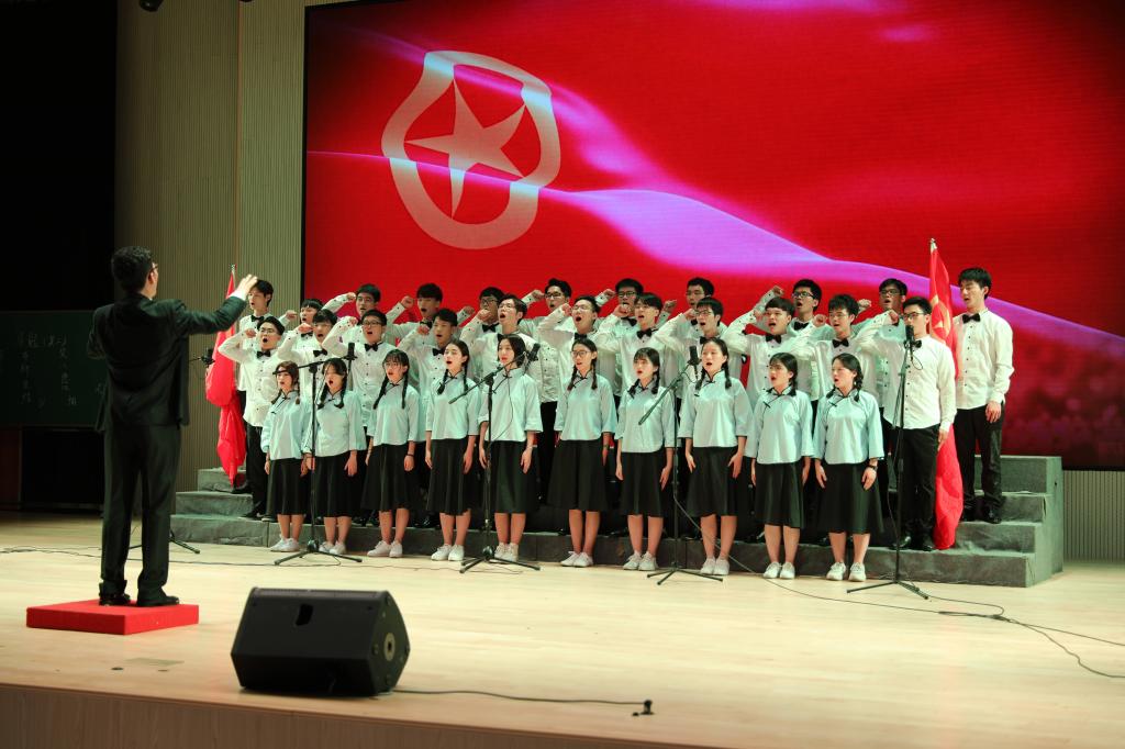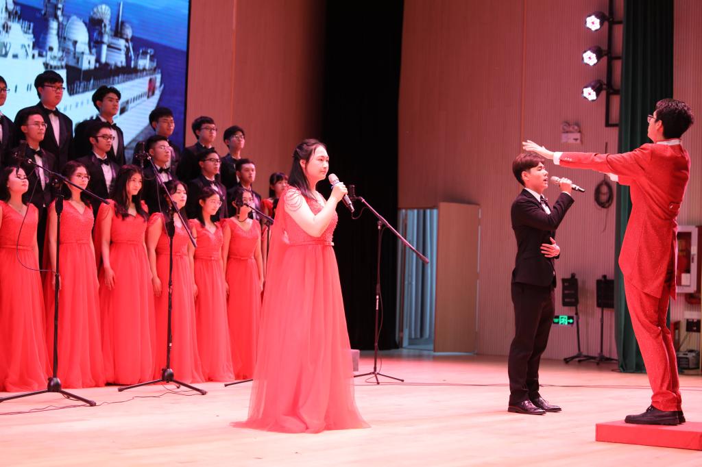 各参赛队伍的动人歌声深深打动了现场观众;歌声暂歇时,由学校老师与同学合作表演的诗朗诵《五四畅想》同样令人心潮澎湃。比赛在学校基础教学部支慧老师的一首独唱《曙色》中走向尾声。