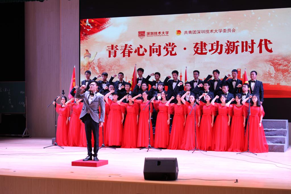 本次“青春心向党·建功新时代”合唱比赛以纪念中国共产主义青年团成立97周年及五四运动100周年为主题,以学院为单位设置六支参赛队伍参加,每支队伍30余人,并配备一名学生指挥,比赛曲目为一首必唱曲目《光荣啊,中国共青团》及一首自选曲目。比赛邀请到深圳市盐田区文联主席蒋祖逸,深圳市大鹏新区音乐家协会副主席兼秘书长、青年女高音歌唱家都园园及青年歌剧导演、青年女高音歌唱家、深技大声乐教师支慧担任评委。