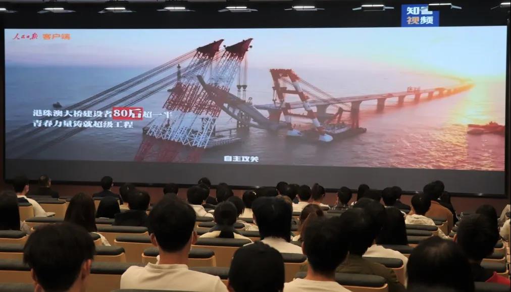 在场同学观看专题片《百年乐章中的青春交响》,共同感受青春情怀书写中国的百年奇迹!