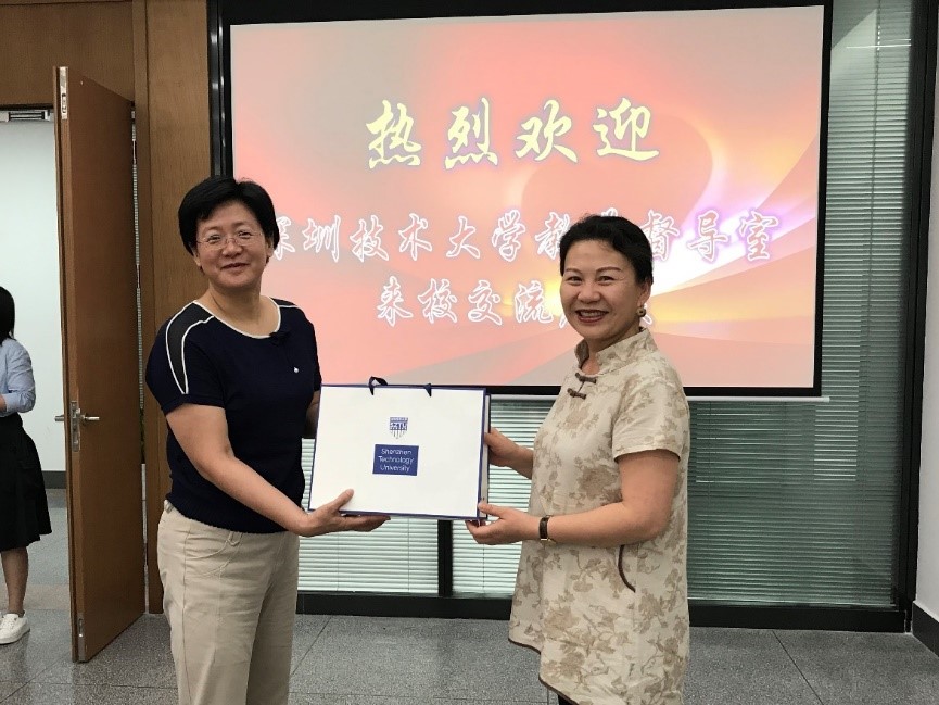哈尔滨工业大学(深圳)教务部相关人员与我校教学质量督导室一行座谈交流,从督导工作制度建设、督导教学检查工作、特色录播系统、督导队伍建设工作等方面做了详细介绍。双方就督导队伍构建、教学检查模式、教学事故处理、教学纪律监督等诸多问题进行了交流。