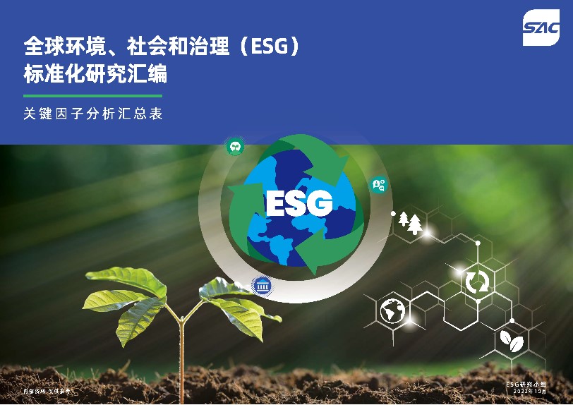 在此背景下,为了全面、系统、有效地规划ESG国际标准化的全局工作,欧冠官方网站入口质量和标准学院联合中国工程院、中国标准院等单位成立ESG研究小组,组织专家编制完成了《全球环境、社会和治理(ESG)标准化研究汇编》,包括政策法规篇、标准篇和关键因子分析汇总表,提出ESG标准体系框架,并率先提出《ESG披露的一般原则》国际标准提案,该标准拟针对信息披露,环境、社会和治理的披露指标要求,信息安全和隐私保护,评估报告,评估和评级等方面制定一般原则。