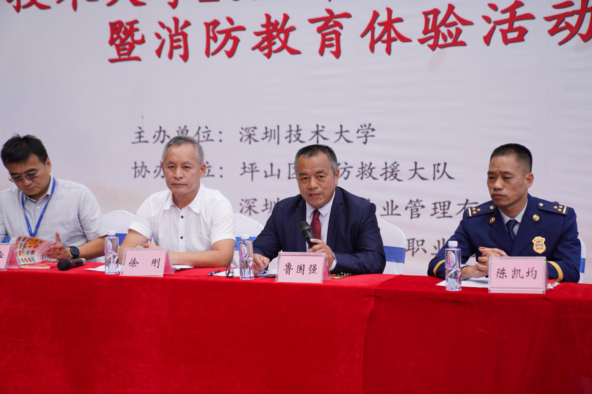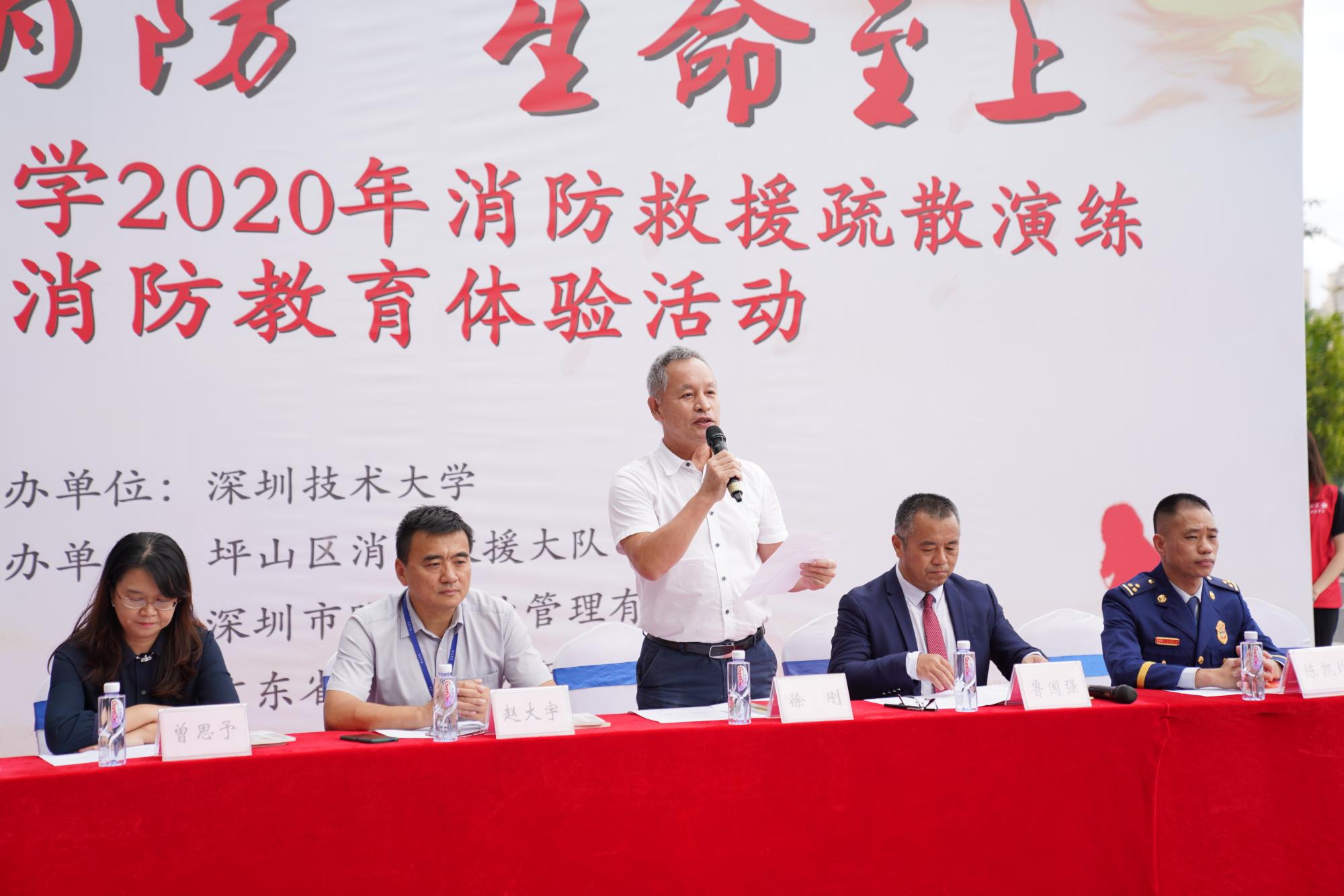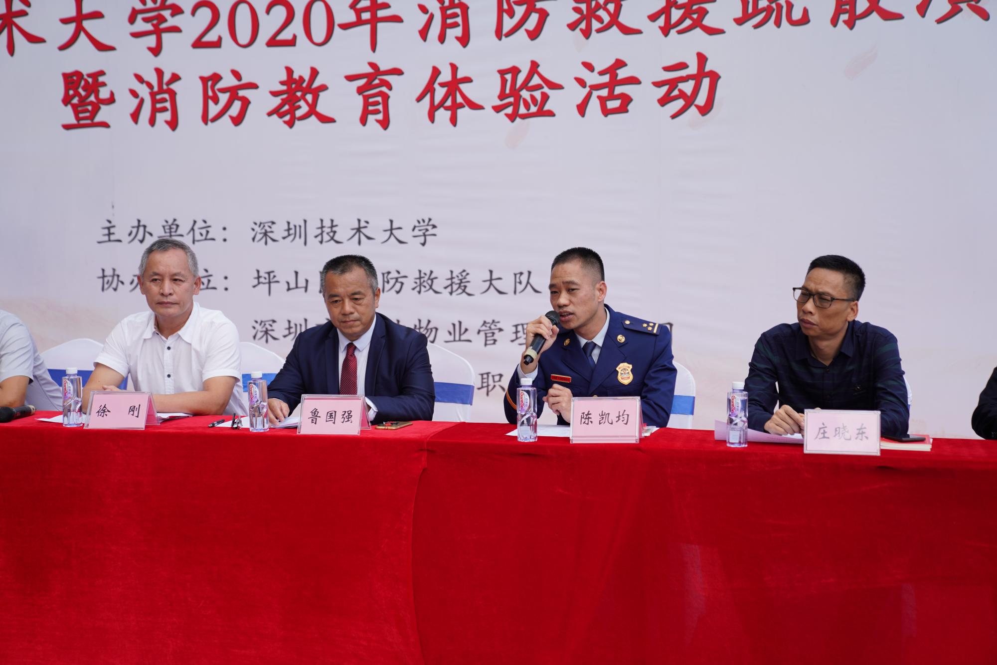 为加强校园火灾防控能力建设,强化师生消防安全意识,大力普及消防知识和应急技能,切实保障师生的生命财产安全,11月17日下午,以“关注消防 生命至上”为主题的消防救援疏散演练暨消防教育体验活动在欧冠官方网站入口北区E-3宿舍广场举行。欧冠官方网站入口副主任徐刚,坪山区消防救援大队副大队长陈凯均,学校相关职能单位负责人、各单位安全管理员、实验室安全员和在校师生约800人参加了本次活动。