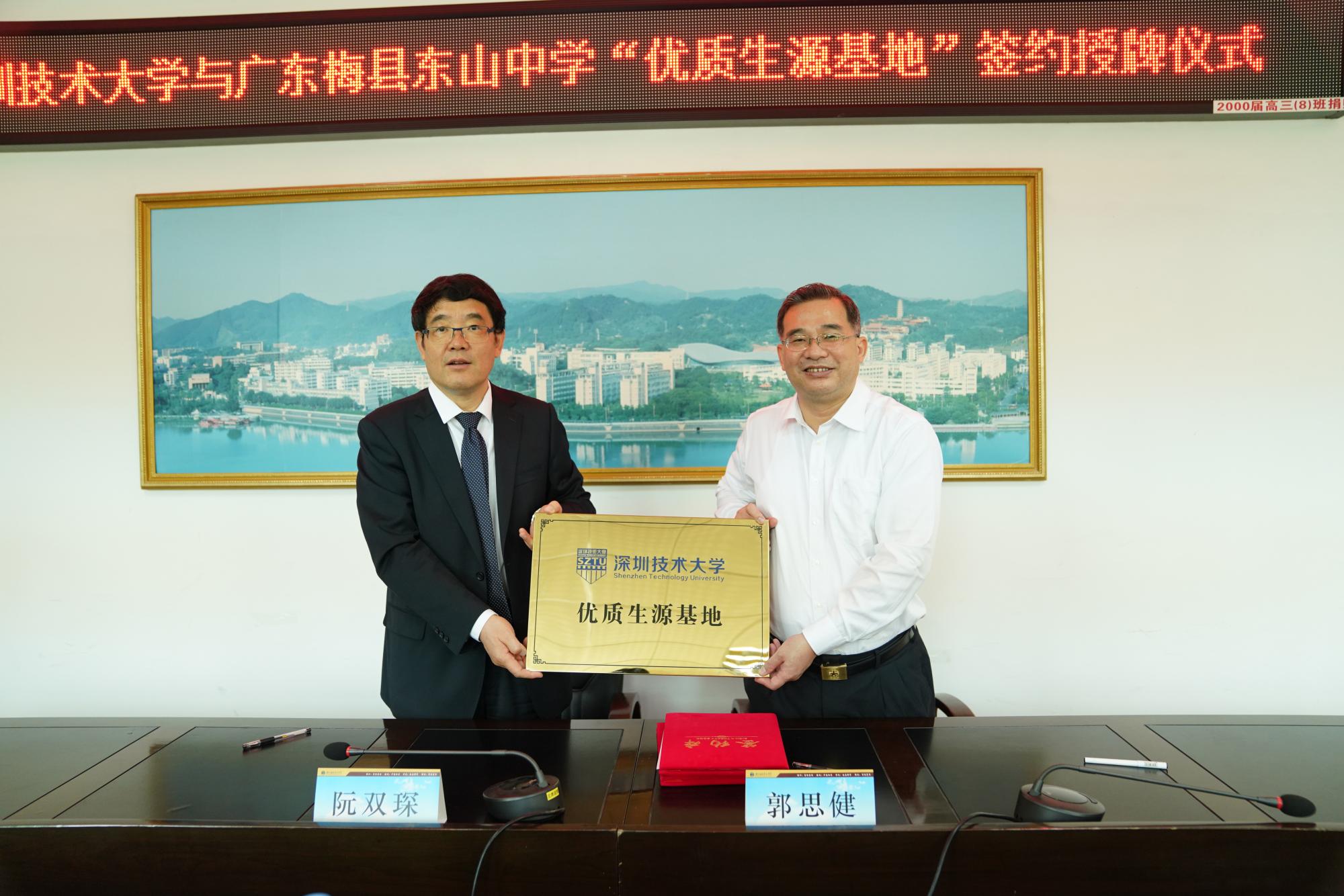 建立“优质生源基地”是深技大招生的一个重要举措,是我校与地方高中共同搭建的重要交流平台。东山中学是我校授牌的第七个“优质生源基地”。此前,我校已与湛江第一中学、深圳市第二高级中学、深圳第二外国语学校、阳春市第一中学、广州市第十六中学、广州市培英中学六所学校签约。