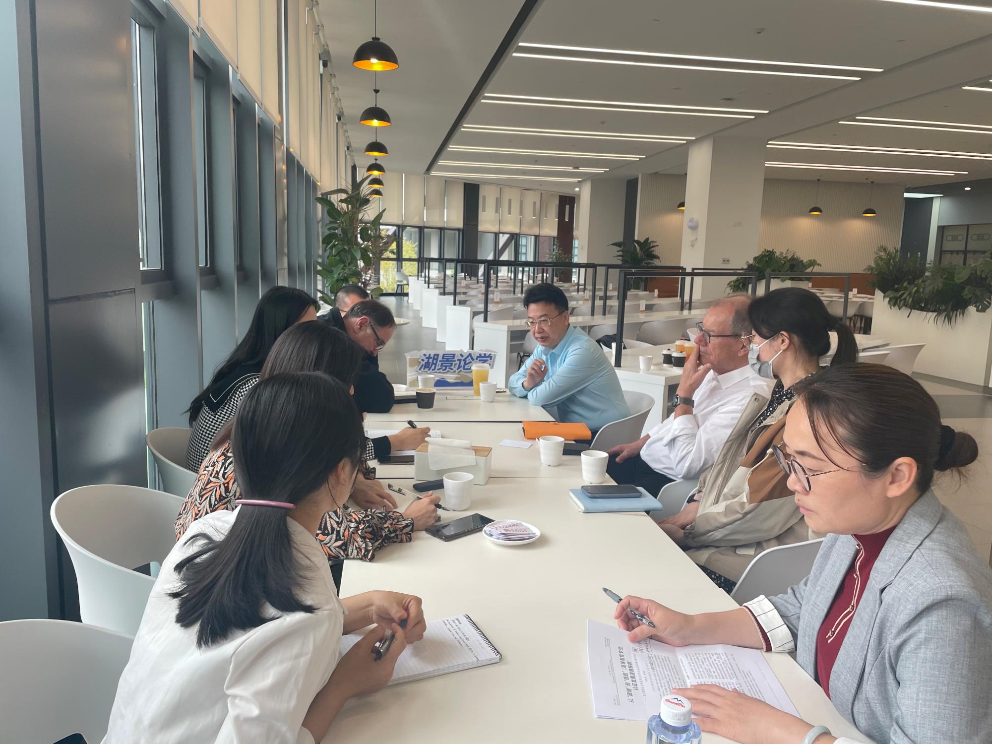 2021年11月16日下午,深技大“湖景论学”第一期教学研讨会在C00-湖景餐厅进行。教务部主任刘宏伟、城市交通与物流学院院长Franz Raps、商学院院长Holger Haldenwang参加活动。