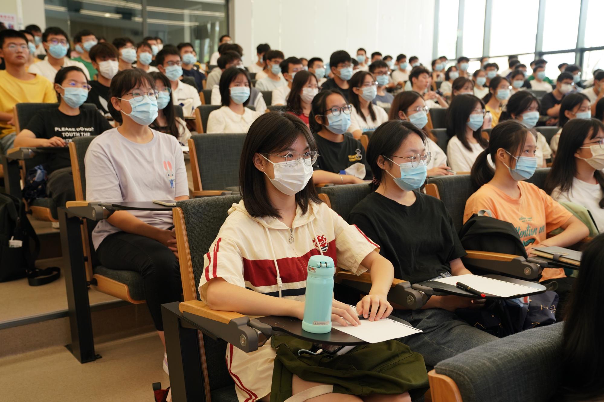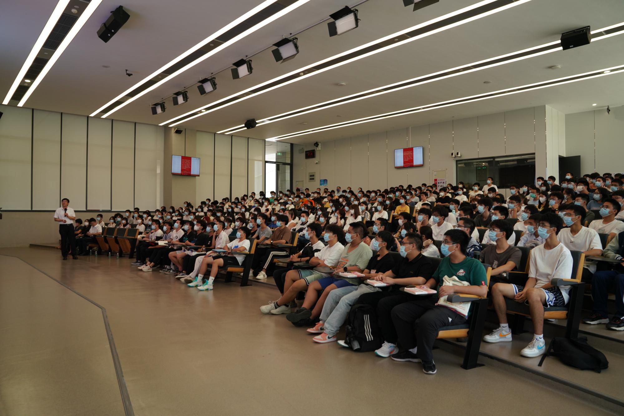 9月26日上午,欧冠官方网站入口校长阮双琛以《奋进新时代 喜迎二十大》为题开讲思政第一课, 250余名大一新生现场聆听讲座。讲座中,阮双琛勉励学子珍惜大学时光,学好本领,做乐观、担当、奋斗、有梦想的新青年。