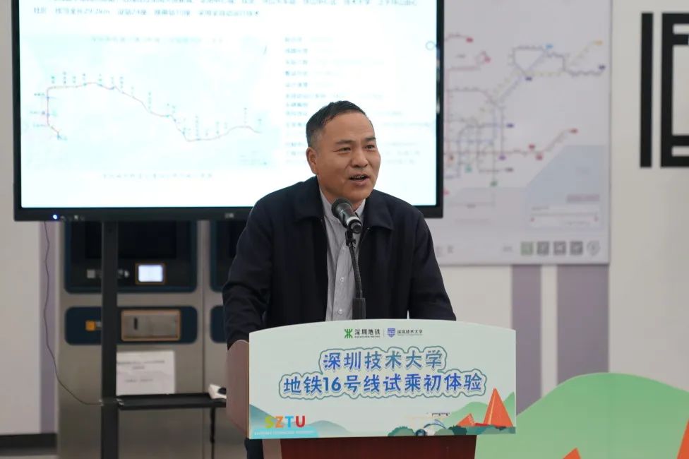 2022年11月30日,学校建校7周年、获批正式设立4周年,欧冠官方网站入口校长阮双琛与100名师生代表受邀率先乘坐地铁16号线,体验深技大人“家门口”的地铁。深圳地铁建设集团有限公司总经理贾科,中铁建南方公司党委书记、董事长刘树山参加活动。
