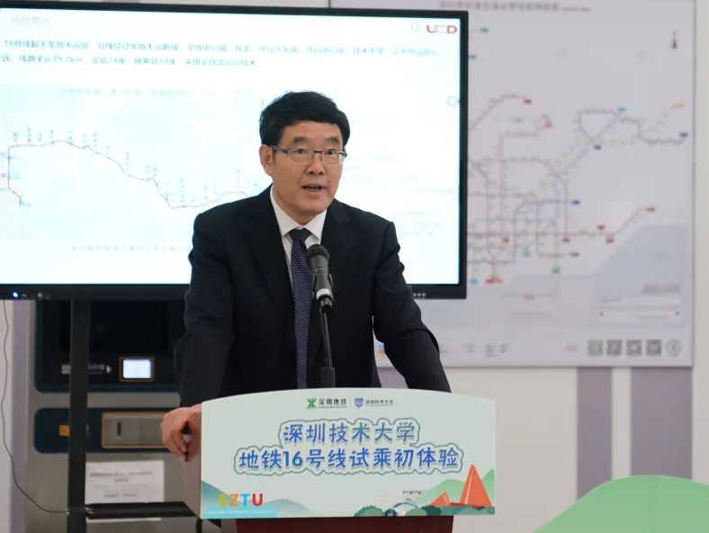 阮双琛代表学校师生感谢深圳地铁、中铁建南方公司及地铁各施工方对技术大学站建设的辛勤付出。他拿出当时的地铁线路建设规划图,与到场嘉宾及师生分享了技术大学站的故事。在市政府的协调下,在深圳地铁等建设方的配合下,地铁站从田头山下移至欧冠官方网站入口校门口,站名从“田头站”更名为“技术大学站”,切实造福学生、造福下一代,利民利学。阮双琛表示,技术大学站的建成及地铁16号线的通车,有利于学校发展、招生及师资引进,有助于学校早日建成粤港澳大湾区引领示范的一流应用技术大学。