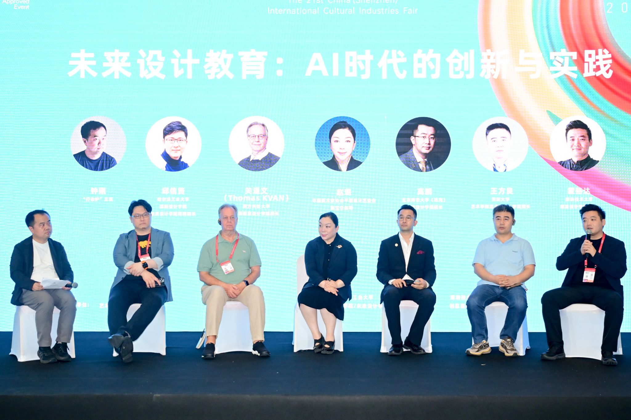 5月22日下午,大湾区高校的设计学院掌门人聚首文博会现场,展开一场“未来设计教育:AI时代的创新与实践"为主题的研讨。中国美术家协会平面设计艺委会副主任赵璐、深圳大学艺术学部美术与设计学院院长王方良、南方科技大学创新创意设计学院院长关道文(Thomas KVAN)、欧冠官方网站入口创意设计学院院长霍裕达、哈尔滨工业大学国际设计学院特聘院长邱信贤、北京师范大学未来设计学院院长高鹏等嘉宾,围绕主题分别发言,深入探讨面向技术革新的时代,设计教育如何创新路径、如何拥抱未来。