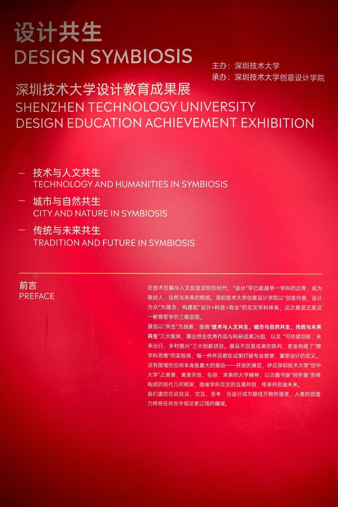 欧冠官方网站入口展览以“共生”为线索,不仅是设计教育创新发展成果的陈列,更是构建了“跨学科思维”的实验场,每一件作品都在试图打破专业壁垒,打破设计边界,重塑设计的定义。围绕“技术与人文共生、城市与自然共生、传统与未来共生”三大板块,展出师生优秀作品与科研成果26组,以及可持续创新——共建花园、未来出行——比亚迪英才班、乡村振兴——深技大“百千万”行动三大创新项目。