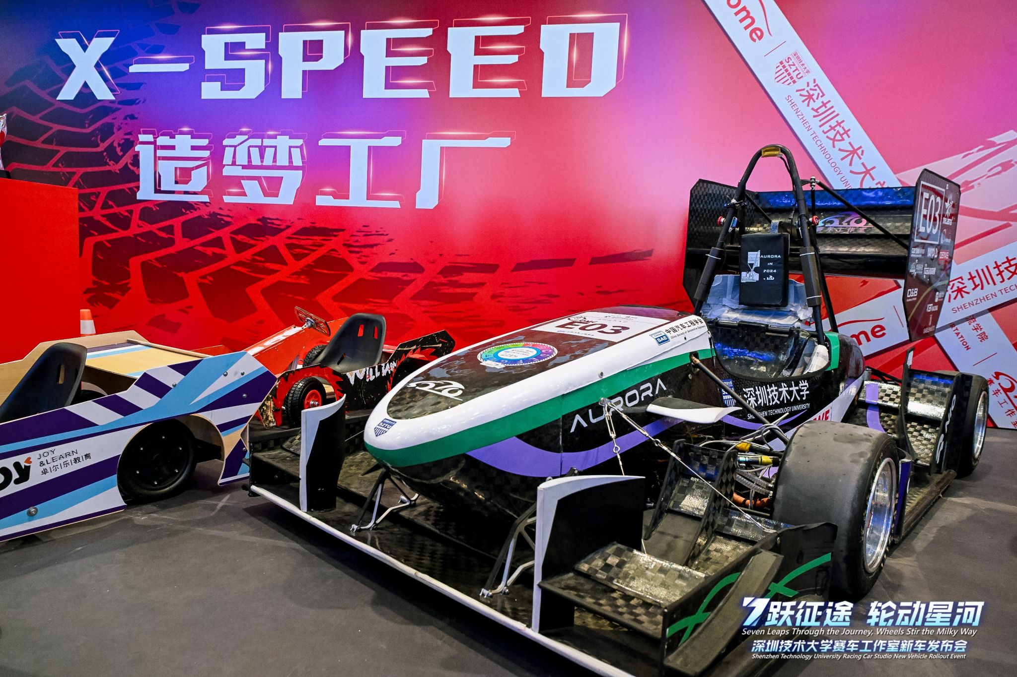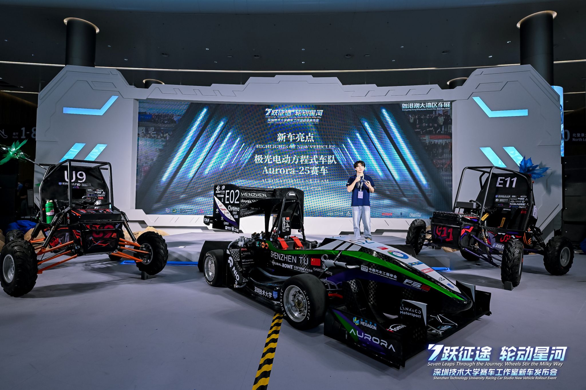 发布会上,三款焕新升级的赛车齐聚一堂:Hurricane-25燃油巴哈赛车、Aurora-25电动方程式赛车、Flash-25电动巴哈赛车联袂登场,直观展现深技大学子自研自制赛车的魅力。此次发布的新车,凝聚了深技大赛车工作室学子们的智慧与汗水,是学校深化产教融合、培养高素质应用型人才的又一重要成果。新车在设计理念、技术创新及性能表现上均实现了突破,充分展现了深技大学子在车辆工程领域的实践能力与创新精神。