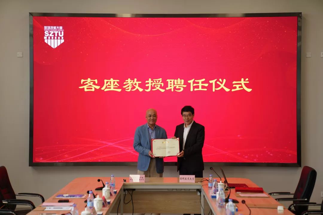 签约仪式后,欧冠官方网站入口校长阮双琛为深圳市华云中盛科技股份有限公司董事长李小勇颁发聘书,受聘其为欧冠官方网站入口客座教授,将不定期为深技大学子讲授专业课程。