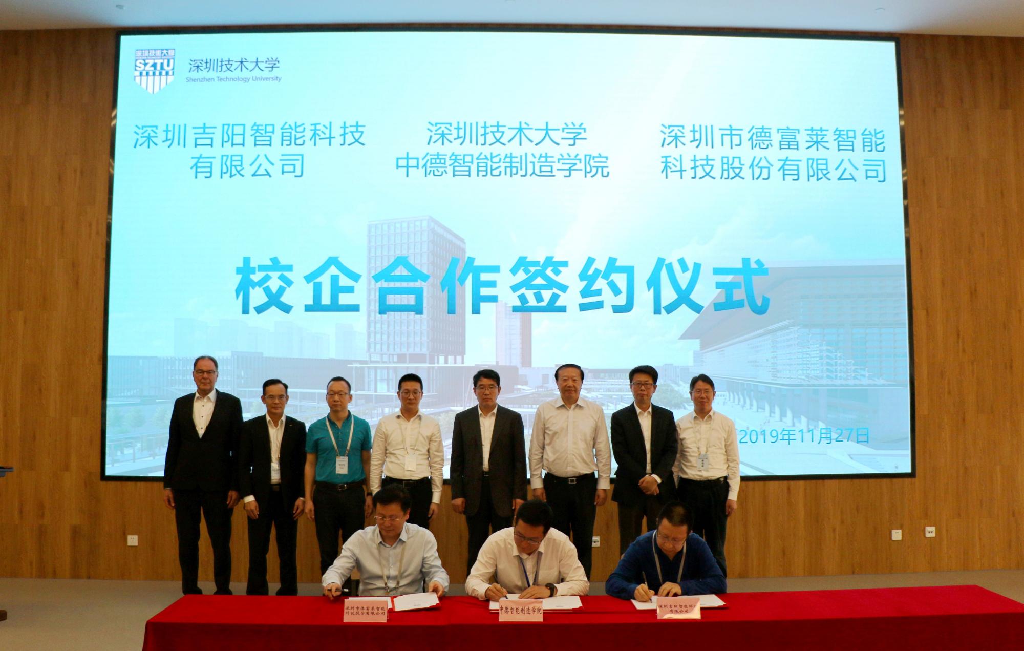 一直以来,深技大注重发挥本土产业优势,积极探索与高科技企业互促双赢的发展机制,广泛建立与行业龙头骨干企业、行业协会、科研院所的合作伙伴关系,实现产教深度融合,本次活动上,深技大的企业合作伙伴再添新成员!在阮双琛校长见证下,中德智能制造学院与深圳吉阳智能科技有限公司、深圳市德富莱智能科技股份有限公司签订了校企合作战略框架协议。大数据与互联网学院与华制智能制造技术有限公司、深圳工作家网络科技有限公司签订了校企合作战略框架协议。今后校企双方将在人才培养、专业课程设计、联合项目研发攻坚等方面开展合作。