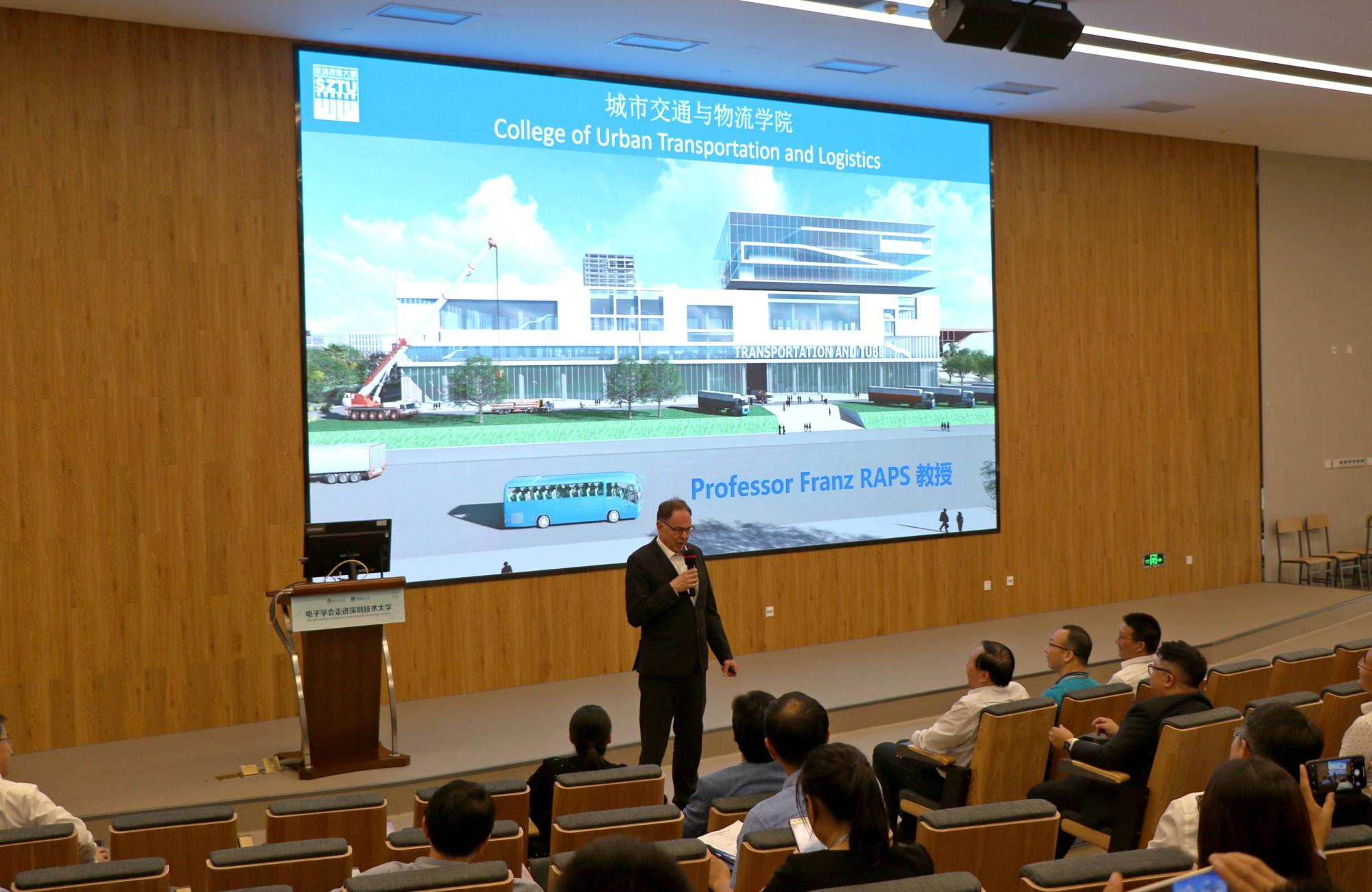 城市交通与物流学院院长付朗兹·拉普茨向来宾详细地介绍了学院现有的专业设置、科研设备等相关情况。