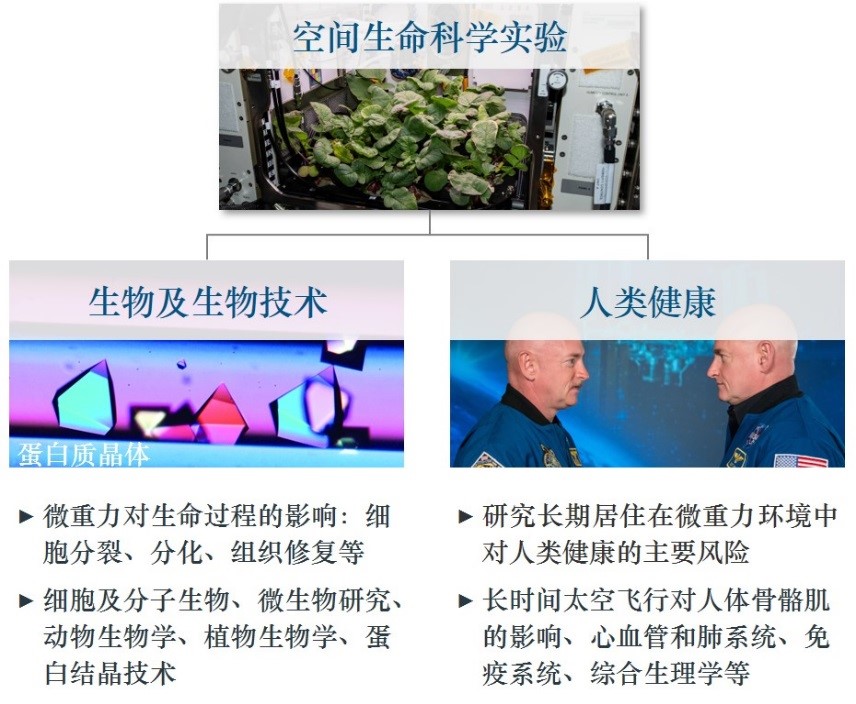 空间站微重力、高能辐射等环境,让其成为一个理想的试验平台:微重力环境会改变物理和生命科学中许多现象,为各领域研究提供了独特条件;高能辐射等极端环境则让科学家对暴露于这些条件下的材料进行测试,更了解材料的本质,并研发出新材料。目前,科学家已经在国际空间站(1998年-预计2024年退役)上进行了近3000多项科学实验,其中生命科学相关的实验数量最多(占50%)。近十年来,各空间大国和组织均将空间生命科学定为十大重点发展的学科之一。随着国际空间站将于2024年退役,即将完成的中国空间站将是人类唯一运行的空间站,将为全球提供空间研究服务。未来在中国空间站将进行空间材料实验科学、航天医学、空间植物实验、空间生物安全、空间医药、生命维持等深空探索及长期太空生活等相关研究;还包括针对国家研发发展方针的研究需求的观察性研究及应用实验,如抗衰老、抗癌、干细胞/再生医学等相关实验;以及可有效加速药物研发和工艺开发速度和精准度的实验,如蛋白结晶、细胞生长、3D生物打印、器官芯片、类器官培养等。