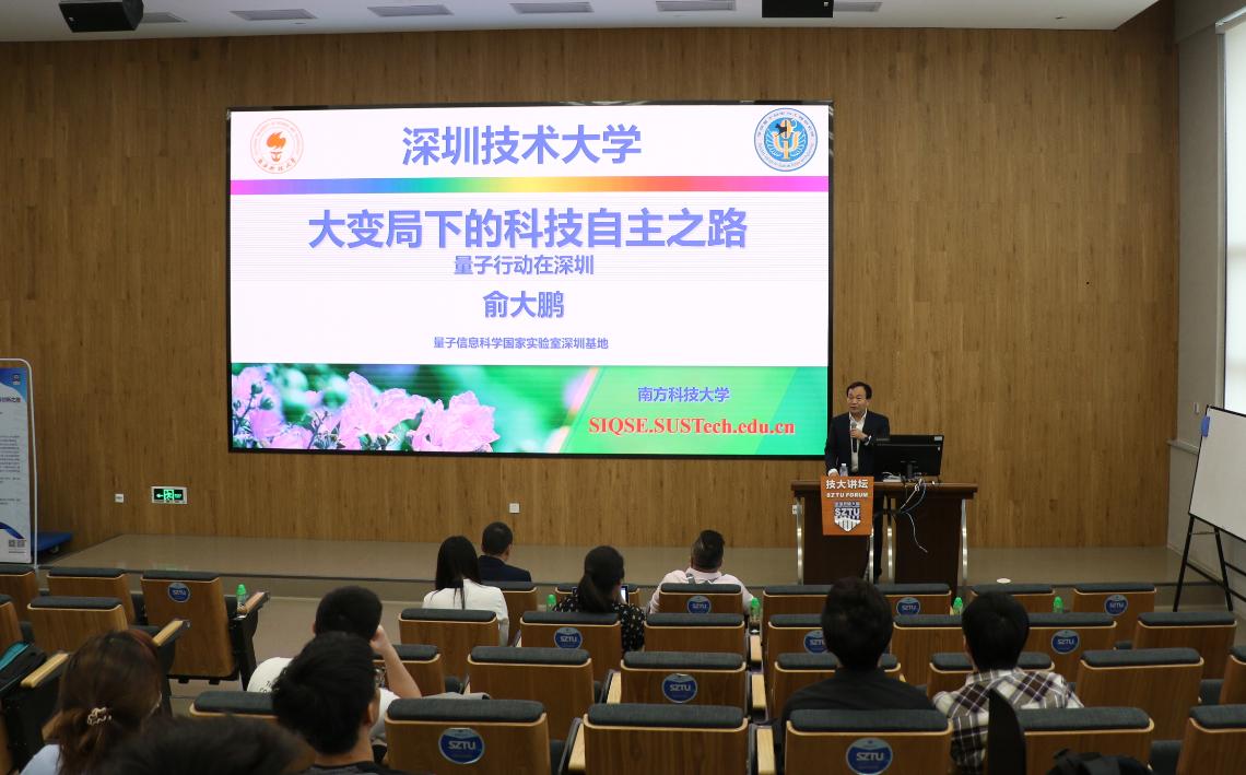 2021年4月27日下午,“技大讲坛”第五十讲在C5教学楼102成功举行。本次讲坛邀请中国科学院俞大鹏院士担任讲座嘉宾,为技大师生们带来题为“历史大变局之下的科技创新之路——量子行动在深圳”的主题报告,介绍量子科学发展史及发展现状、量子计算机的工作原理、量子科技国内外发展现状、以及深圳在量子科技领域的发展现状。