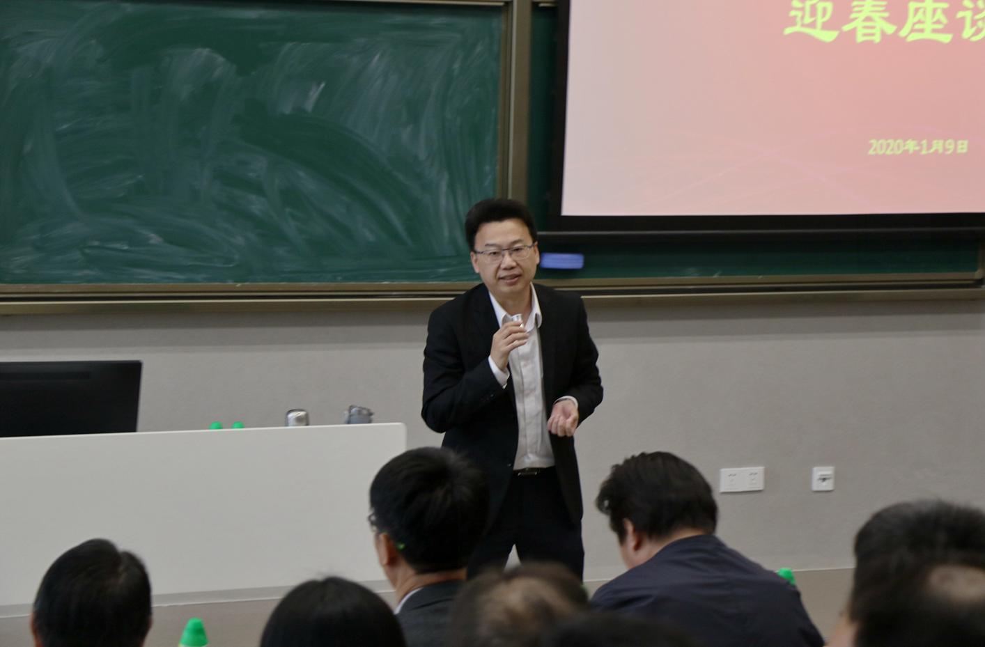 新材料与新能源学院韩培刚院长介绍了教学与科研的重要性,教师在做科学研究时,要与企业保持密切联系,将企业的难题与研究相结合。