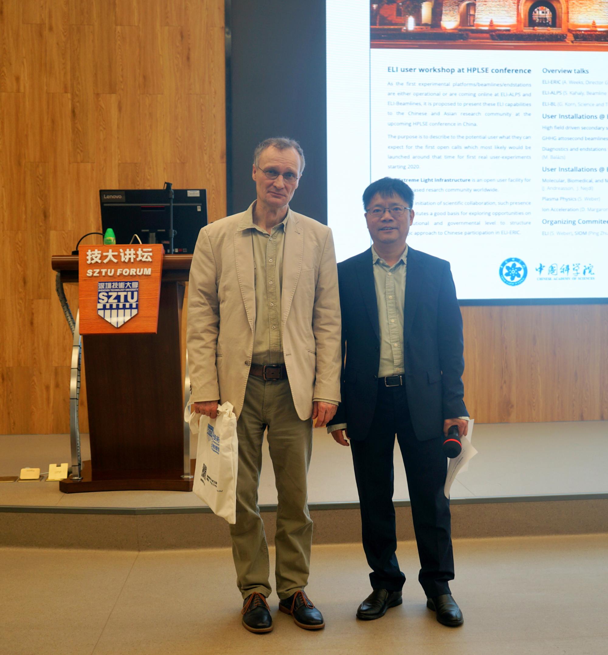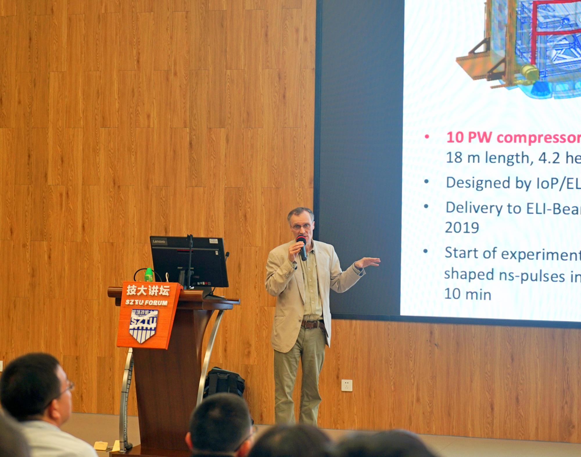 Stefan Weber教授详细地介绍了欧洲极强光设施(ELI)的筹建历程、组织架构,并重点介绍了位于捷克布拉格的ELI-Beamline的团队建设、物理应用、各条激光束线的设计参数、建设进度等,分享了建设过程中获得的宝贵经验,并对未来超强激光的进一步提升进行了展望。从中我们看到了极强光系统的复杂性与困难点,为我校超强激光与先进材料技术实验室的建设提供了借鉴。
