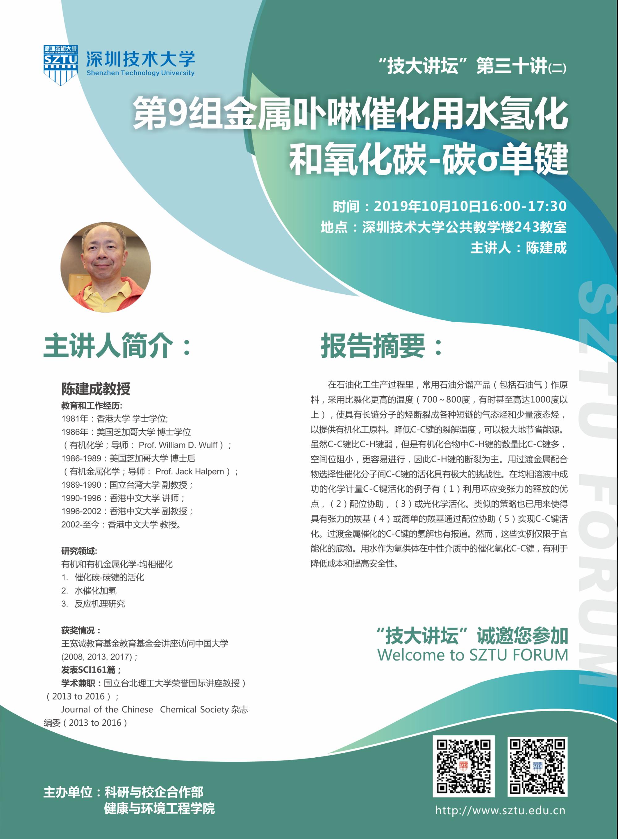 主讲人:陈建成教授(香港中文大学)