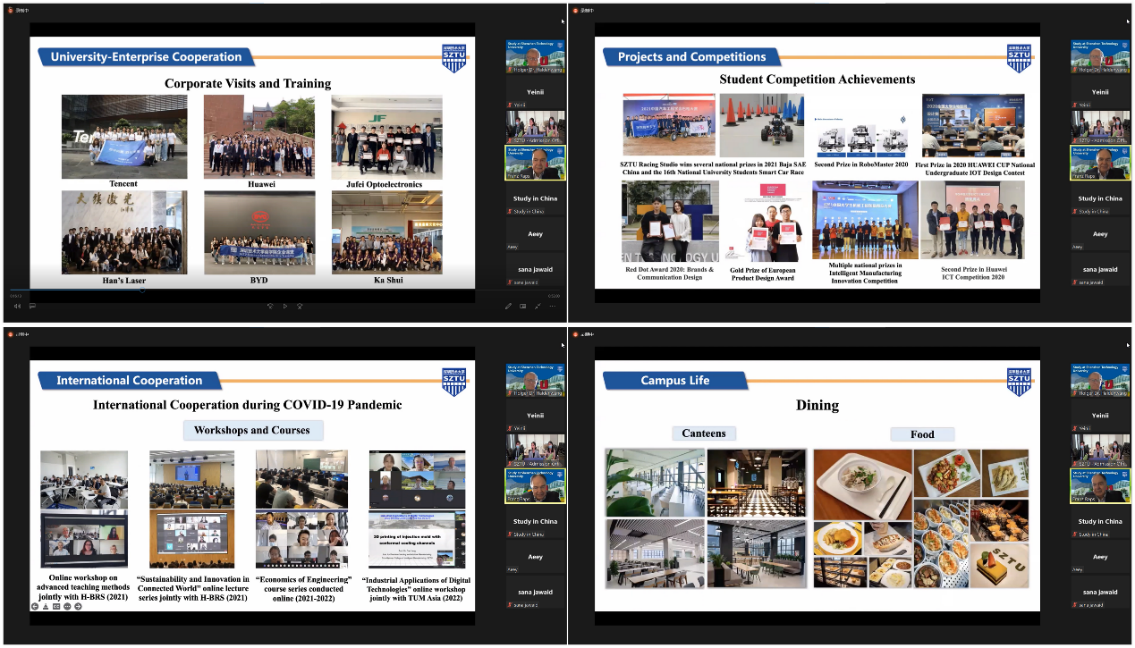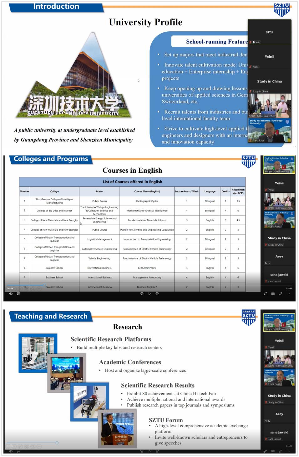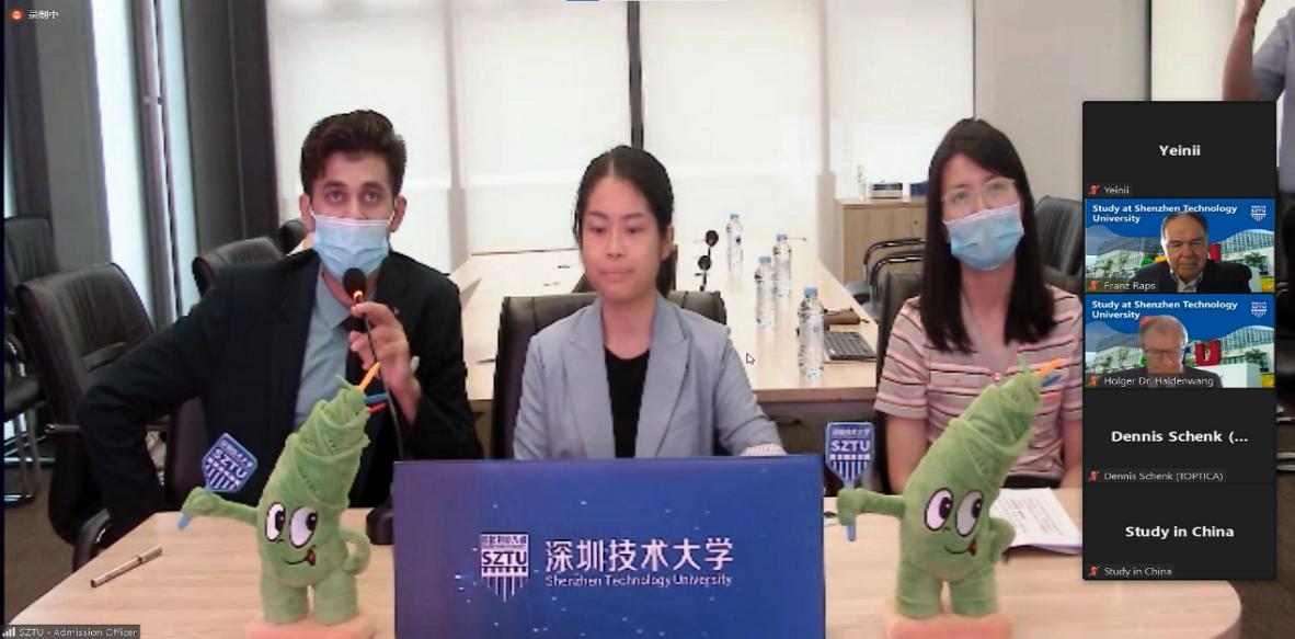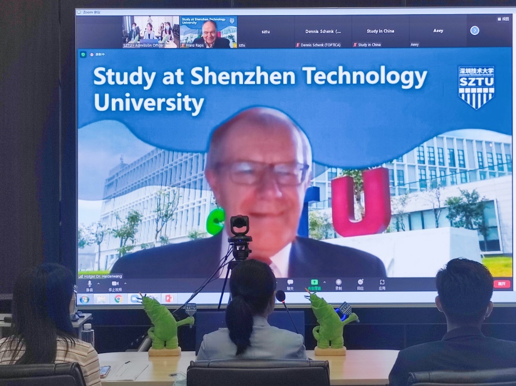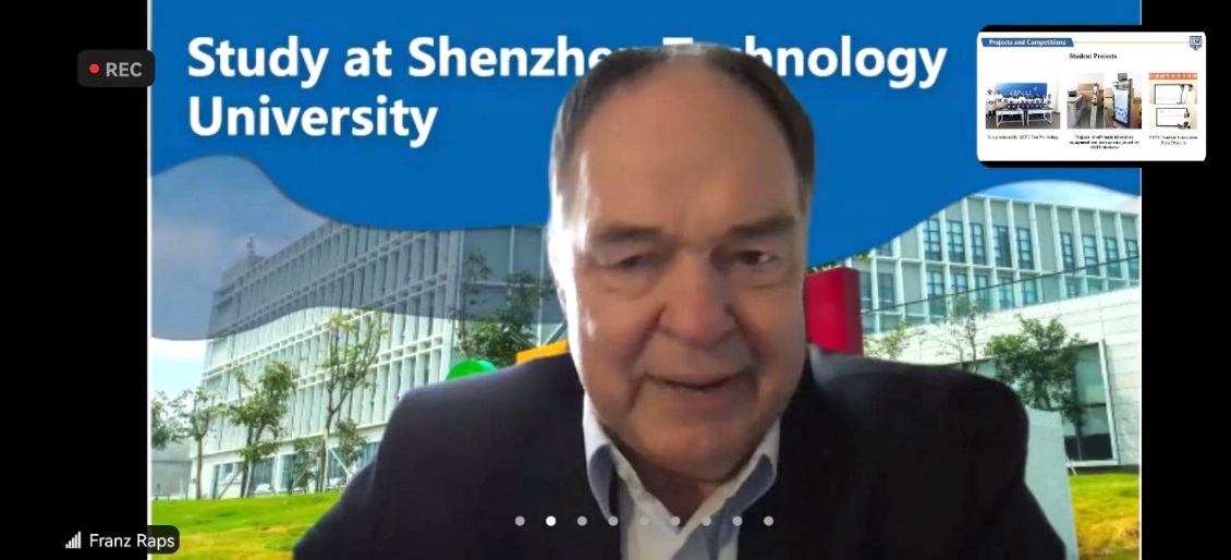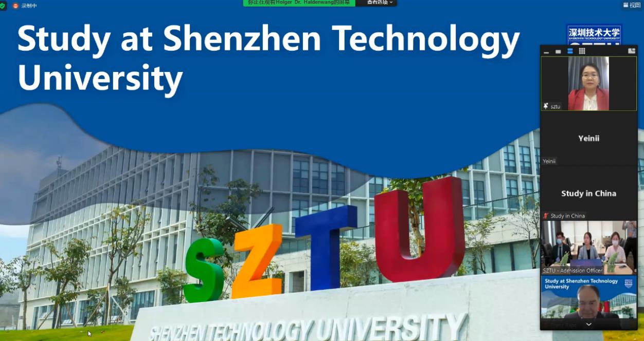 4月29日下午,深技大线上直播宣讲活动顺利进行。本次直播由国际合作与学生工作部主任曾思予主持,商学院院长及讲席教授Holger Haldenwang、城市交通与物流学院院长及讲席教授Franz Raps主讲,国际合作与学生工作部与教务部相关教职工、学校留学生代表,以及对深技大感兴趣的国外师生共同连线参与。