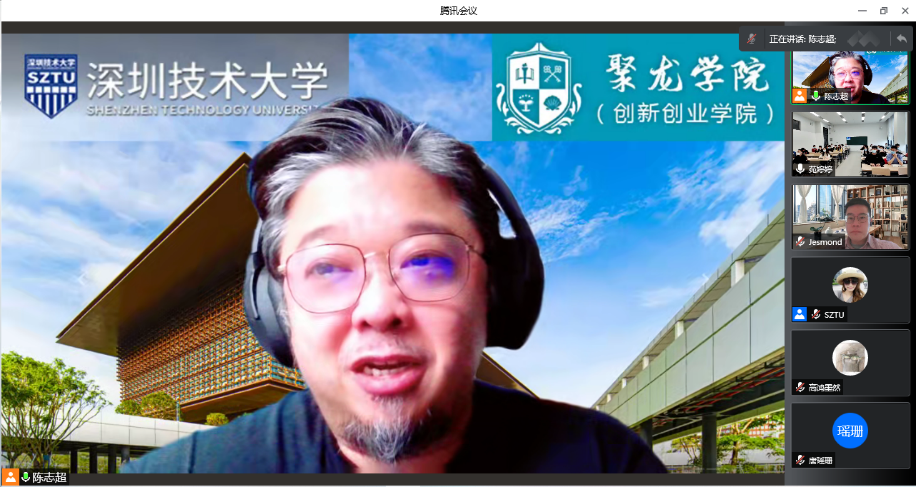 在开课前,聚龙学院副院长、智能传感系统中心主任陈志超教授进行开场致辞。陈教授表示,这是深技大首次与TUM Asia联合开办线上选修课,希望学生通过选修此课程,学习前沿先进制造技术以及工业4.0相关知识。该课程第一节课的授课老师是慕尼黑工业大学亚洲分校的Jesmond Hong博士。Jesmond Hong博士主要负责讲授关于智能产业就绪指数的相关知识。