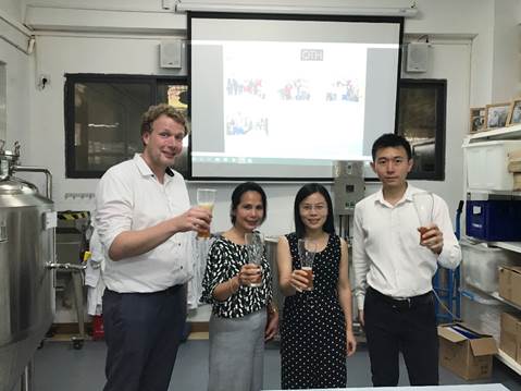 荷兰客人参观中德啤酒酿造过程控制实验室