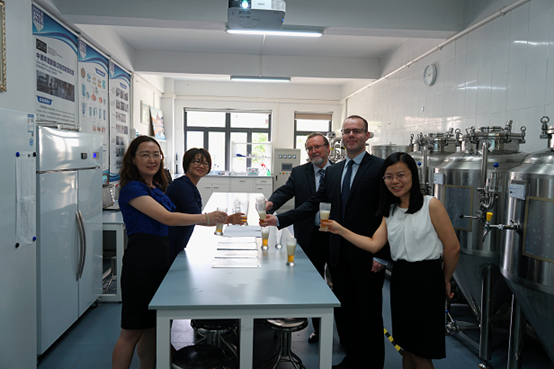会后,孙乡瑜副主任带领来宾参观了我校先进材料实验室、中德物联网创新实验室-电子技术实验室联合实验室,以及中德啤酒酿造过程控制实验室。来宾品尝了我校自酿德国啤酒,莱奥尼德总领事也受邀在留言簿上留言祝福深技大。