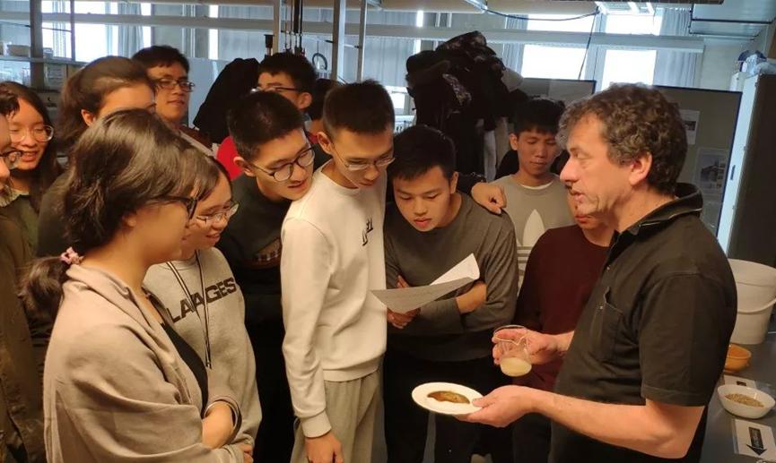 令人期待的啤酒酿造课堂则由同为欧冠官方网站入口啤酒酿造工作室的指导老师Mr. Schrammel为大家教授,他先大致讲解了整体的酿造流程,随后让同学们从水浴加热到研磨大麦、从糖化熬制到过滤、发酵全程亲自上手体验,通过实际操作学习酿造工艺。