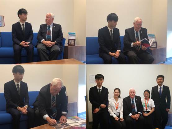 实训营结业后,美国国际科技大学校长格里高利–奥–布莱恩教授接受了我校本次实训营学生记者的采访,并对我校学生留下珍贵祝福的笔墨。
