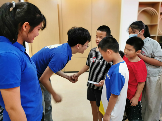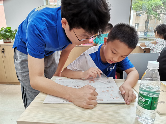 7月19日,第一期的课业辅导如期举行,参加本次活动的志愿者是2020级的吴俊杰、卓可莹和李凯林同学。三位同学刚去到便进入了角色,组织小朋友们签到并指引他们就坐。活动伊始,志愿者们进行了短暂的自我介绍,紧接着就给小朋友们答疑解惑,小朋友们在做作业的过程中遇到不会解答的地方会举手示意,此时我们的志愿者会上前耐心指导。持续了一个钟的学习后,三位志愿者还组织小朋友们进行了“你画我猜”小游戏,活动室频频传出孩子们爽朗的笑声,就这样我们的志愿者和孩子们愉快的度过了一个下午。