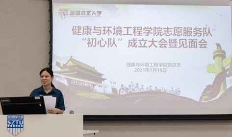 7月16日,健康与环境工程学院志愿服务队“初心队”成立大会暨见面会于C-5教学楼108室召开,会议由学院党总支副书记黄凤静老师主持,学院生物医学工程党支部书记和树庆老师、行政实验教工党支书书记艾福金老师、辅导员王学谦老师、行政支部李贵叶老师及部分志愿队学生参会,共同见证这一激动人心的时刻!