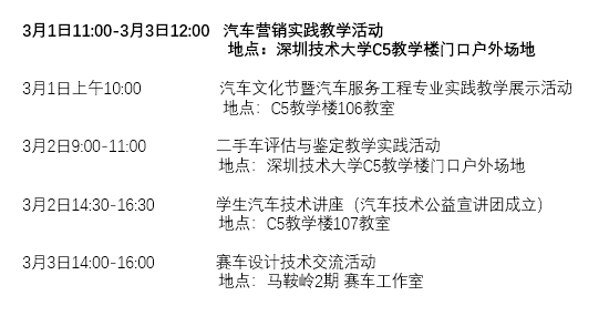 为促进与各汽车企业开展校企合作,同时丰富汽车系实践体验课程,城市交通与物流学院联合深圳市汽车维修行业协会以及深圳市13家汽车4S店以及欧冠官方网站入口赛车工作室,举办欧冠官方网站入口首届汽车文化节暨汽车服务工程专业实践活动。