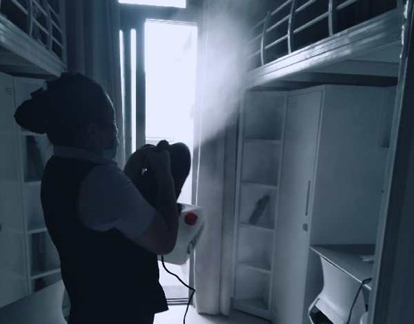 在同学们返校前夕,学生公寓保洁人员使用雾化器对E—2所有宿舍进行了全面消毒消杀,工程人员对各宿舍空调滤网进行了清洗。同时,学生公寓服务中心也储备了充足的防疫物资,为同学们返校做好了充足的准备,全心全意为同学们营造一个安心、卫生的居住环境。