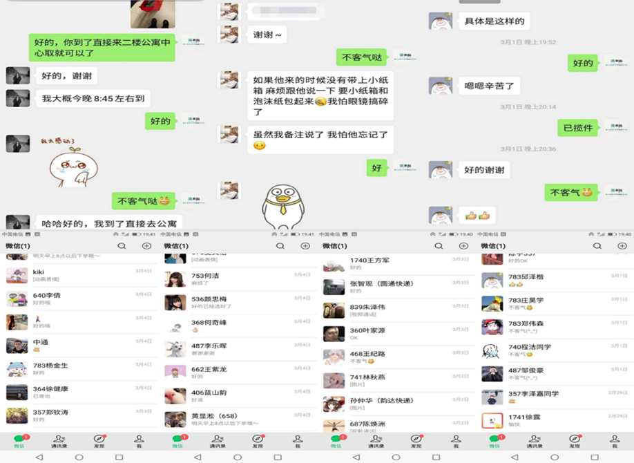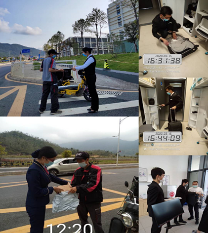 暖心服务。网课期间,宿管帮同学们把上课需要的书本、电脑等用品寄回家,保证学生在家正常上课学习。截止3月26日,完成对111位学生邮寄及自取物品的服务。