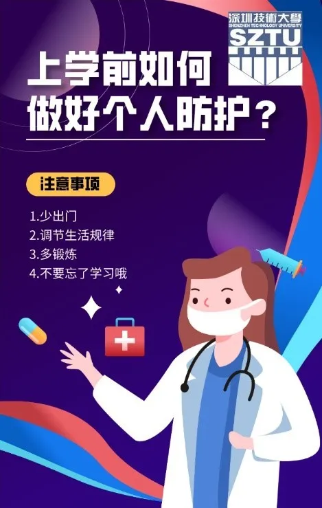 来自18级交通运输2班的方炜鑫同学制作了一幅开学温馨海报。海报中温馨提示了四点注意事项,旨在提醒大家在家中要注意防护措施,保证开学前健康。虽然我们不能冲上救死扶伤的最前线,但是我们处处都可以参与到这场全国的抗疫斗争中来。多洗手,不扎堆,戴口罩,拒绝野味,我们每个人都是一名合格的“抗疫标兵”。但最后也提醒同学们不要忘了学习哦!