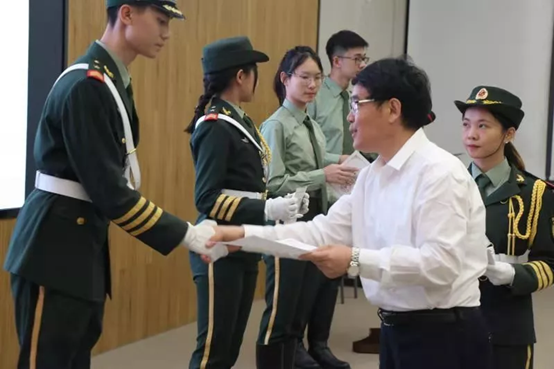 11月8日下午,欧冠官方网站入口国旗护卫队于教学楼举行了新队员入队及省优秀国旗护卫队队员颁奖仪式,欧冠官方网站入口校长阮双琛、中德智能制造学院院长吕启涛、健康与环境工程学院院长胡俊青、创意设计学院院长刘声远、中德智能制造学院副院长王红志、城市交通与物流学院副院长姜连勃、国际合作与学生工作部负责人曾思予及各学院副书记、辅导员等受邀出席了本次仪式。