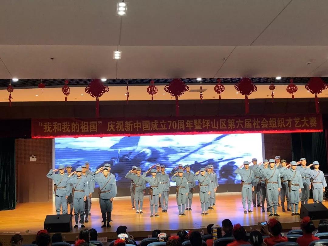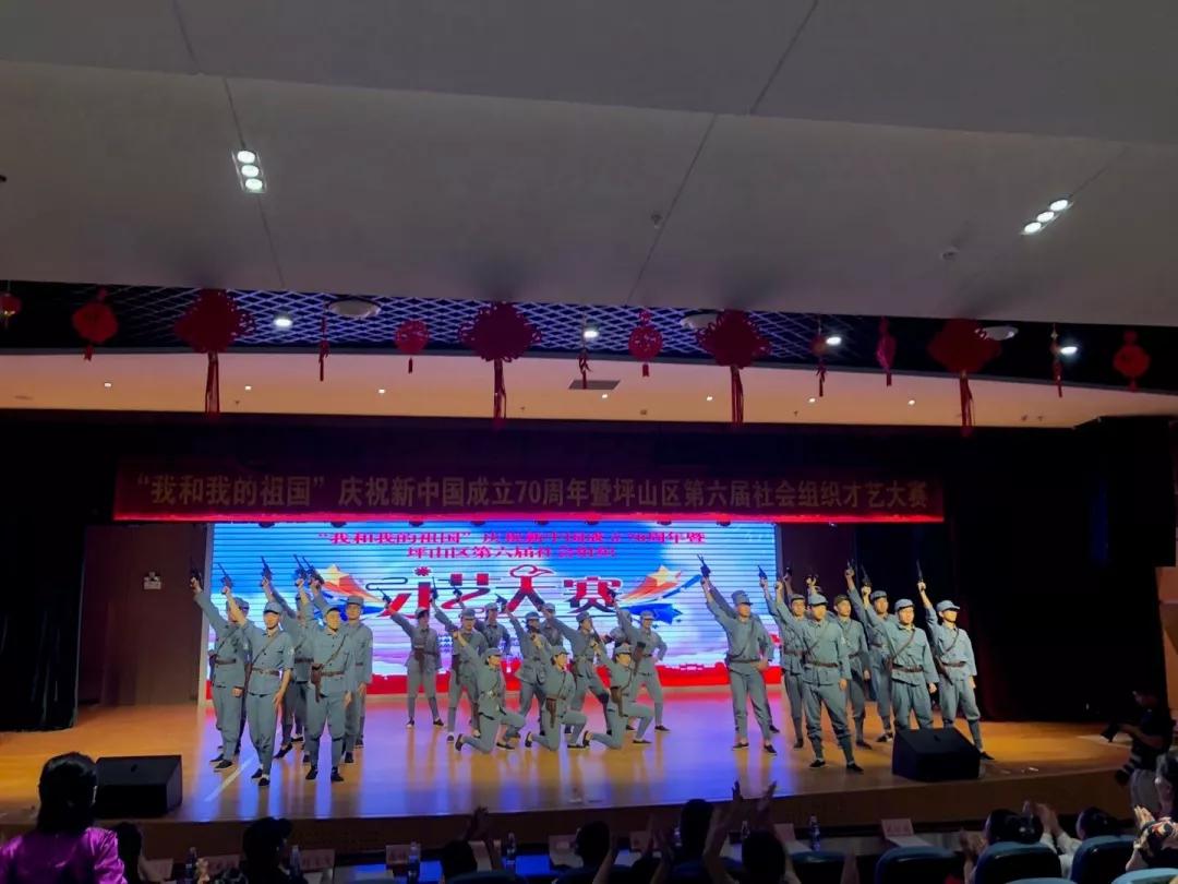 10月8日 “我和我的祖国”庆祝新中国成立70周年暨坪山区第六届社区组织才艺大赛在坪山中心小学的会堂里如期举行,健康与环境工程学院2018级部分学生代表学校受邀参加本次演出。