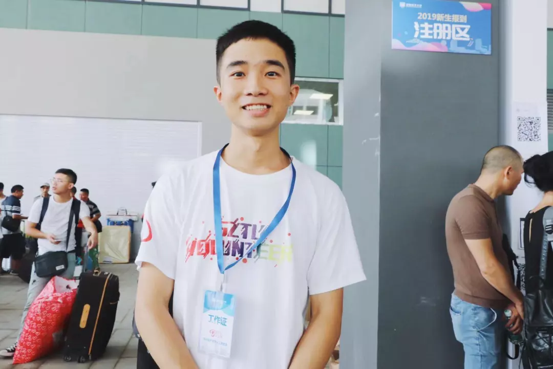 来自山西大同的曹彪是今天迎新报到现场又一位新生志愿者。前几天预约了预注册活动的他昨天就已事先来学校报到,在仔细逛了一圈校园后,他认为学校的环境宜人,非常适合学习。今天在迎新现场当起了志愿者的他,身份在短短一天之内有了极大转变,让他觉得自己迅速地融入了深技大,对学校有了归属感,他欣喜地说:“我真的很开心能成为深技大的一员。”