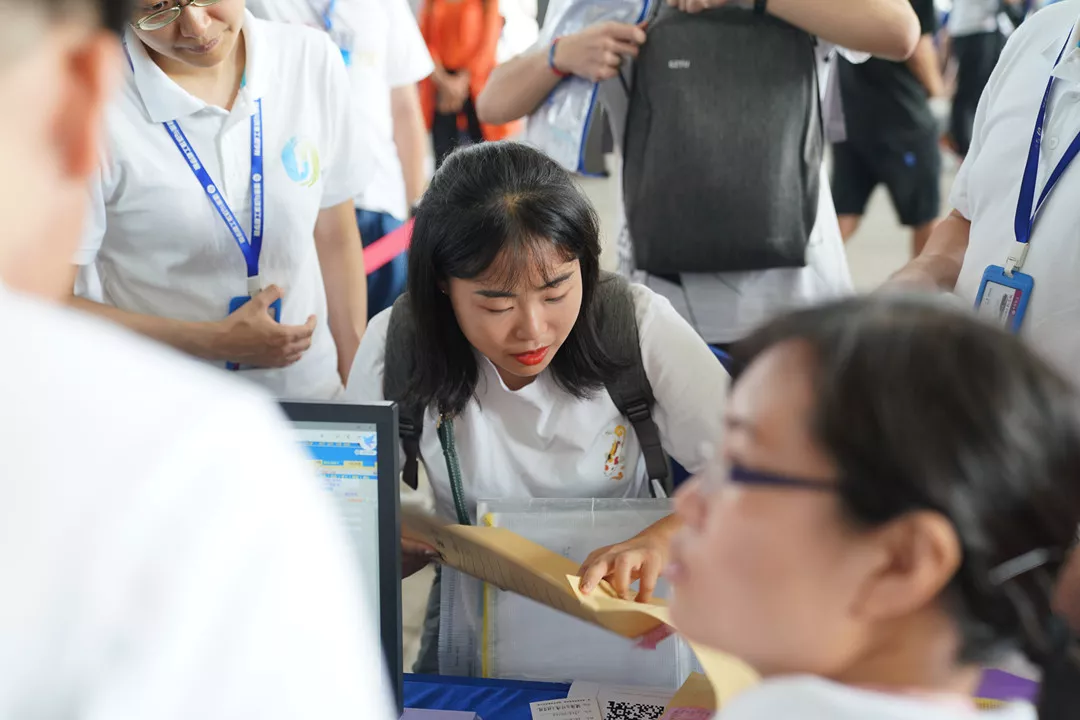 在各学院的新生接待台前,负责迎新的工作人员们耐心地帮助新生们完成报到注册工作,分发资料袋,提供咨询服务,迎新工作处处可见巧思。