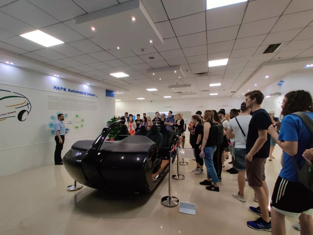 第二站,同学们参观了位于比亚迪六角大楼展厅的各系列新能源汽车、零部件等,同时工作人员详细的给大家介绍了比亚迪的创建历程、经营业务及前景规划,并与中瑞学生热烈交流。随即大家乘坐云巴来到比亚迪四角大楼,聆听工程师描绘比亚迪前沿技术,让中瑞学生对公司的科技创新有全面认识。