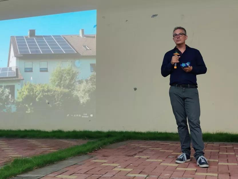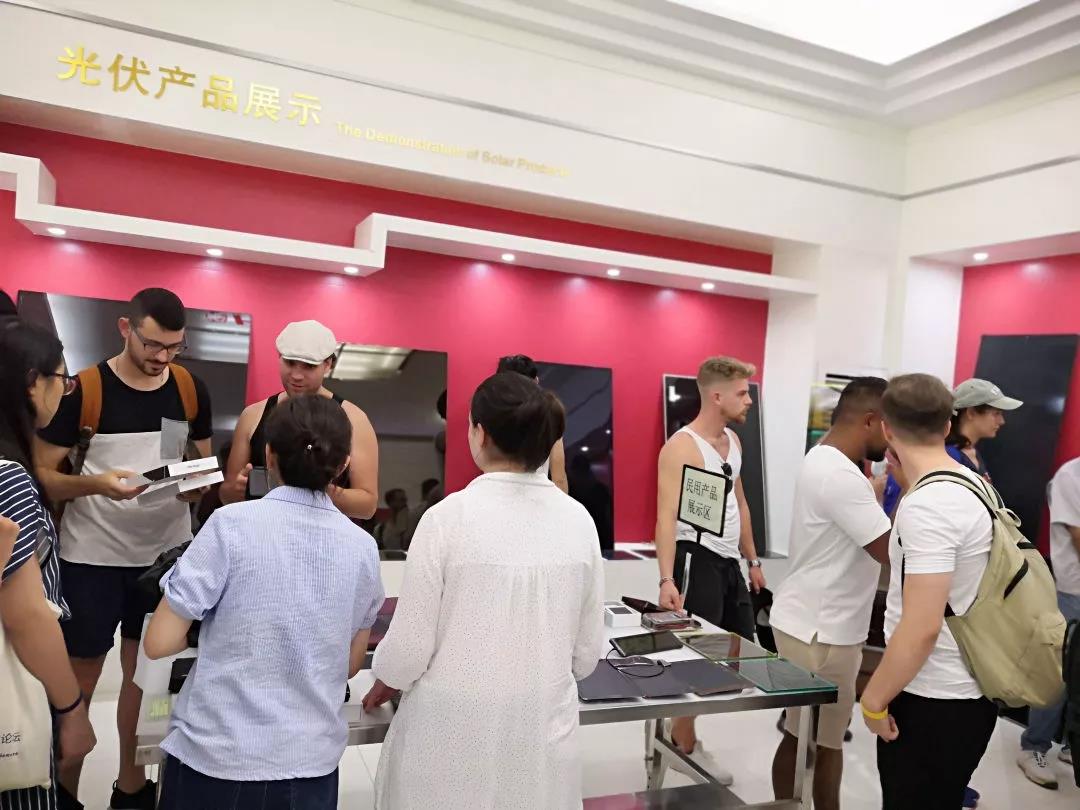 8月14日清晨,中瑞学生一行抵达知名薄膜太阳能企业、全球化的清洁能源跨国公司-汉能移动能源控股集团的河源基地,在工作人员的带领下,大家参观了铺设汉瓦组建的光伏小屋、由薄膜光伏组件作为幕墙的建筑大楼、以及位于天台的光伏发电站等重点项目,体会到汉能的前沿技术和绿色环保的设计理念。
