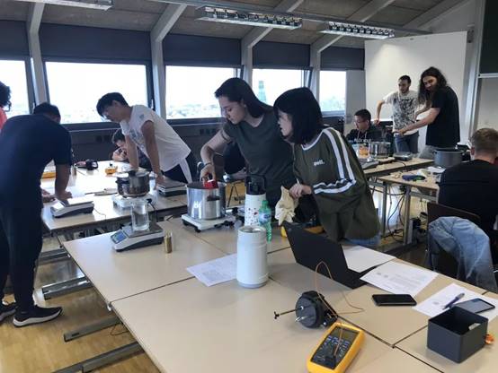 新材料与新能源的小伙伴们来到伯尔尼应用技术大学的第一周,便在Lorenz Martin教授的课堂上进行了一场生动而有趣的物理实验,首先教授为同学们介绍了关于实验的背景知识,紧接着教授将中瑞学生俩俩分组围绕“Calorimetry”,“Electric Energy Source ”及“Conservation of Mechanical Energy ”为主题进行了一天生动而有趣的实验课。通过此次实验不仅使同学们对能源储能方面有进一步的了解,也加深了中瑞小伙伴之间的友谊。