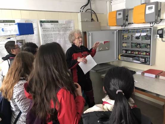 随后,大家走进少女峰太阳能光伏发电测试点,观察监测数据的设备和记录方法。该测试点1993年由HTA Burgdorf (即今天的伯尔尼应用技术大学)策划和建成,自1993年10月以来一直进行能源输送和数据监测。