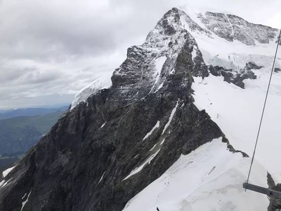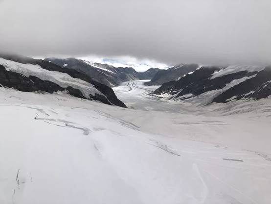 8月7日11点45分,中瑞师生们乘坐约4个小时的火车终于抵达海拔3454米、全欧洲海拔最高的少女峰火车站。从山脚到山顶,景观却经历了从夏天到冬天的截然变换,山上白雪皑皑、浮云弥漫,山下一片翠绿、泉水涓涓,火车穿梭在丘陵白云间,沿途的景象美到窒息。