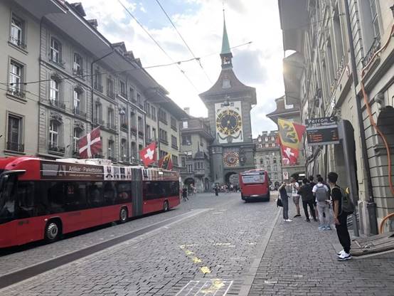 瑞士学生们还带领着深技大学子游览建立于12世纪的伯尔尼老城,这里汇聚了中世纪欧洲建筑的精髓,1983年被列为联合国教科文组织文化遗产名录。漫步在原汁原味的由石灰岩筑成的建筑群中,一座座中世纪的拱门和文艺复兴时期遗留下来的喷泉时刻向路人诉说着沉淀的历史,让人流连忘返,仿佛就置身于欧洲中世纪老城,真实而虚幻。