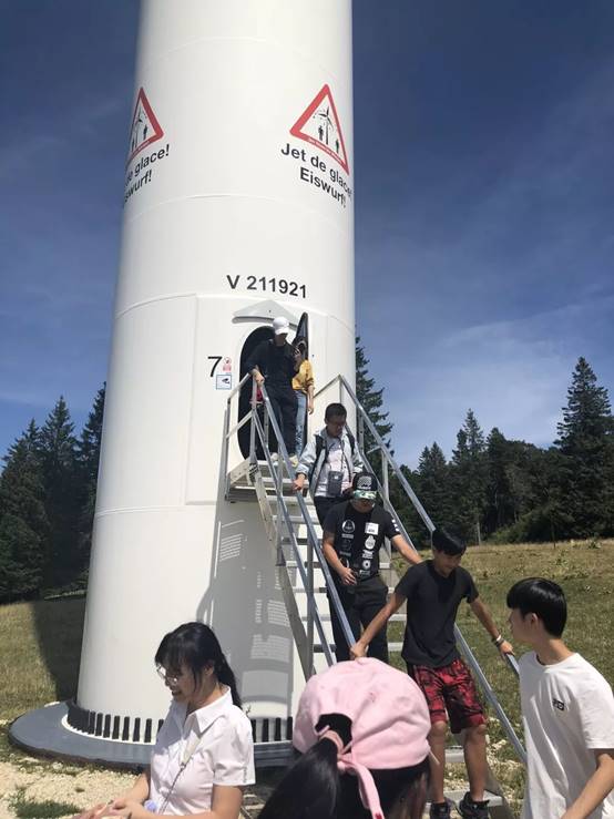 火车穿过连绵的山谷和葱郁的草原,乡村小镇星罗棋布般散落在起伏的山头,平静祥和,独自安于一隅。8月1日,中瑞师生来到了瑞士太阳峰上的(以下简称Mont Soleil) 风能发电站。